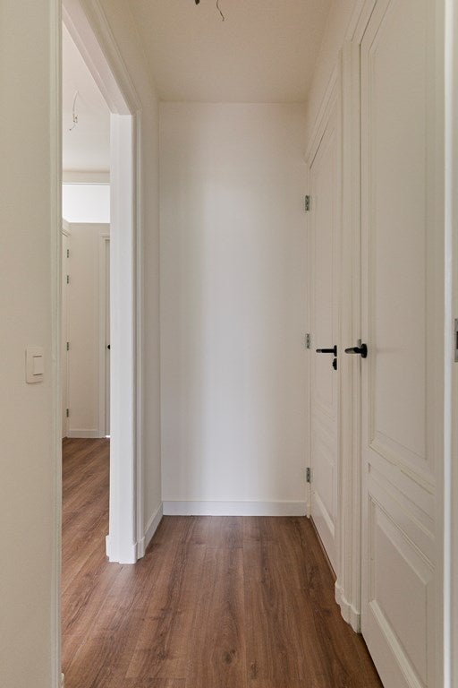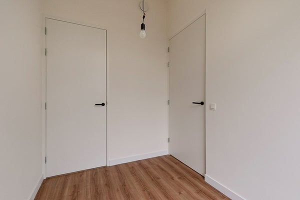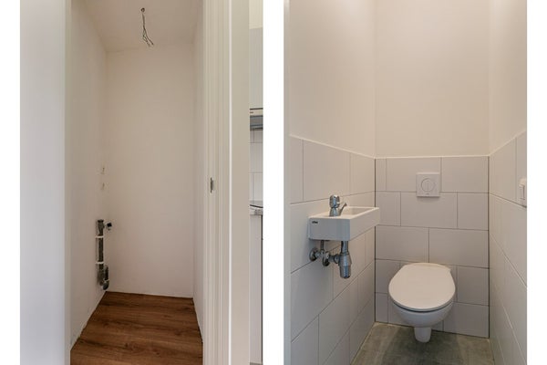 Via de hal bereik je het aparte toilet en de kast met aansluiting voor de wasmachine. De tweede slaapkamer is zeer geschikt als kinderkamer of thuis kantoor.