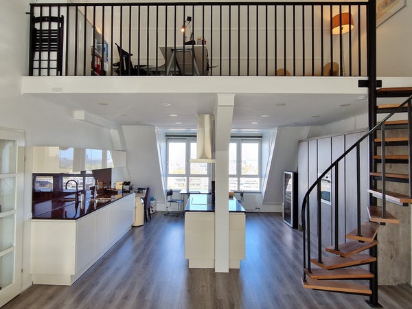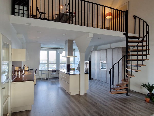 Vanuit de ruime en lichte woonkamer (11meterx5.40meter) geniet je van het geweldige uitzicht over Rotterdam, de Willemsbrug, de Hefbrug en het Entrepot. De keuken is volledig ingericht met Quooker, grote koelkast, grote vriezer, inductie kookplaat, afzuigkap, oven en vaatwasser. Het hoge plafond biedt veel ruimte en voelt comfortabel aan. Middels een open stalen trap komt u naar de vide/tweede woonlaag (5.40meter x 2.90 meter). Hier vindt u een royale lounge kamer waar een heerlijke zit kan worden gerealiseerd.