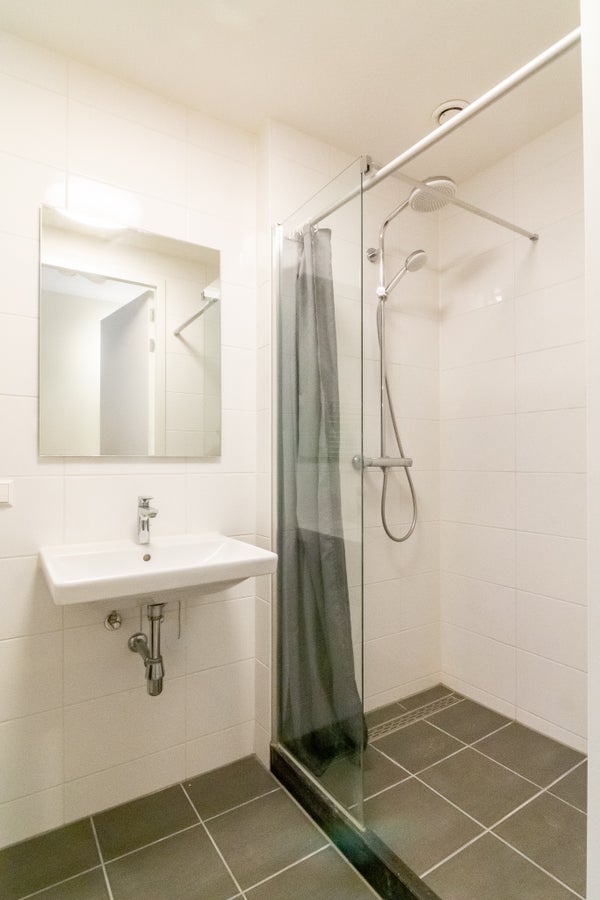 On the 5th floor, there's a spacious communal roof terrace with benches (greenery is still being planted) and panoramic views of Rotterdam's city center. It's a wonderful place to relax (see photos)!