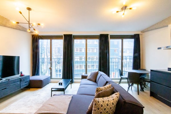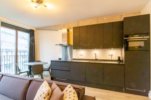 SHORT STAY MAX 6 MONTHS ! Beautiful and ideal for expats! Fully upholstered and fully furnished apartment with energy label A, Ideal for a single or a couple, on the 2nd floor with 1 bedroom and communal roof terrace directly available in the best area of Rotterdam!