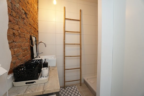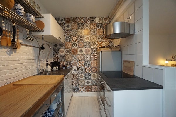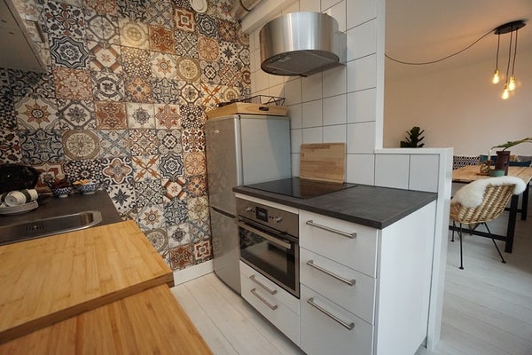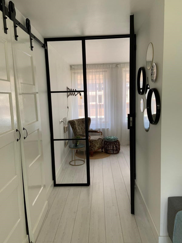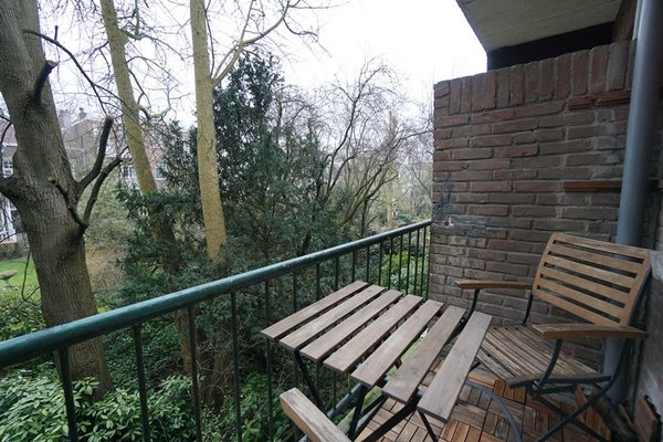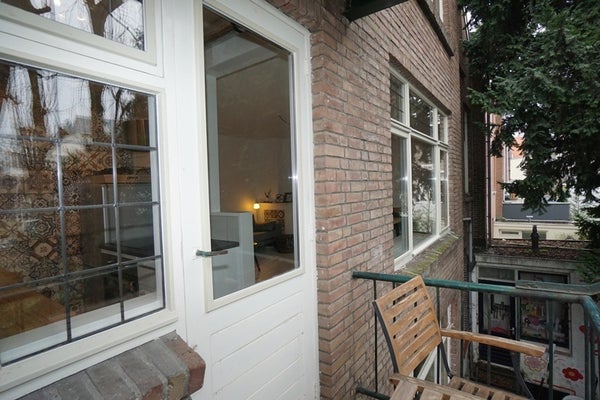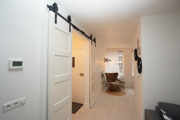 Indeling: Afgesloten entree met bellen tableau en brievenbussen.1e verdieping Binnenkomst in de hal met toegang tot alle vertrekken.De woonkamer is gelegen aan de achterzijde met uitzicht over groen en beschikt over een zitbank en eettafel. De half open nieuwe keuken is voorzien van veel kook- en opbergruimte, een koelkast met vriesvak, elektrische kookplaat en vaatwasser. Vanuit de keuken is er toegang tot een charmant balkonnetje.De slaapkamer is gelegen aan de voorzijde en voorzien van een tweepersoonsbed en een garderobekast. De badkamer is uitgerust met een inloopdouche, wastafel met spiegel en toilet.