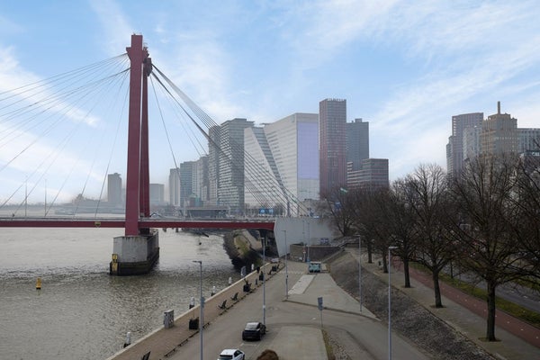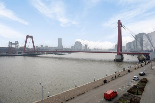 Gelegen aan de mooie Maasboulevard in Rotterdam, biedt dit ruime en elegante appartement van ongeveer 105 m² twee slaapkamers, een moderne keuken, een prachtig afgewerkt badkamer en een balkon met adembenemend uitzicht op de iconische Willemsbrug en de Maas.