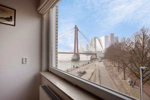 Luxueus en volledig gemeubileerd 2-slaapkamer appartement beschikbaar met balkon en uitzonderlijk uitzicht over de Maas en Willemsbrug!