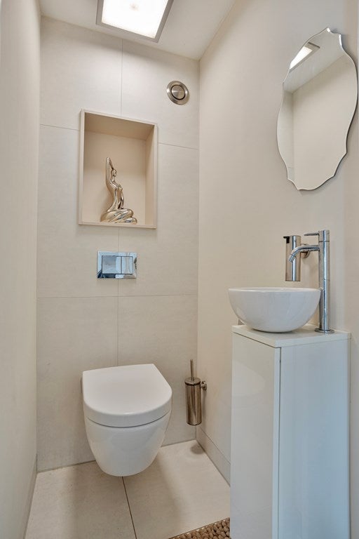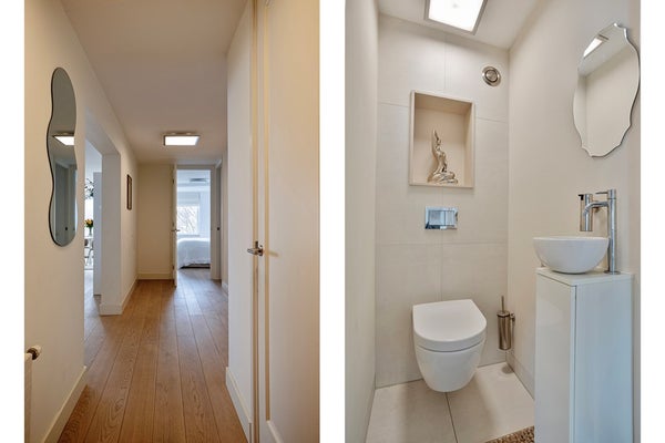 De hal leidt ook naar een apart toilet dat is uitgerust met een wastafel.