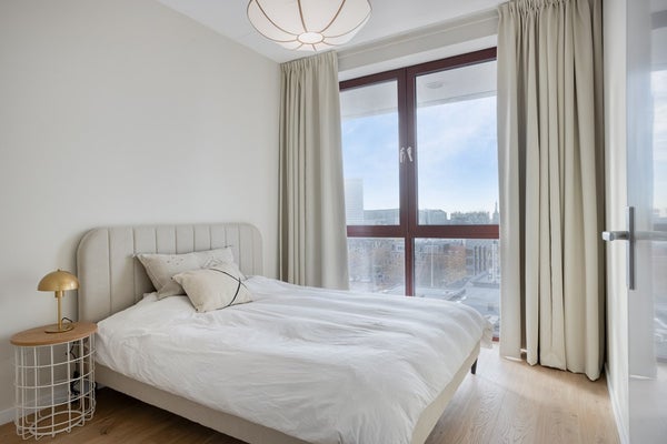 Deze luxueuze toren van 23 verdiepingen combineert elegantie met stedelijk wonen. Het appartement bevindt zich op de 9e verdieping, met een prachtig uitzicht en veel natuurlijk lichtinval. Bewoners hebben tevens toegang tot een gezamenlijk dakterras op de 7e verdieping, een ideale plek om te ontspannen of gezellig samen te komen met uitzicht over de stad.