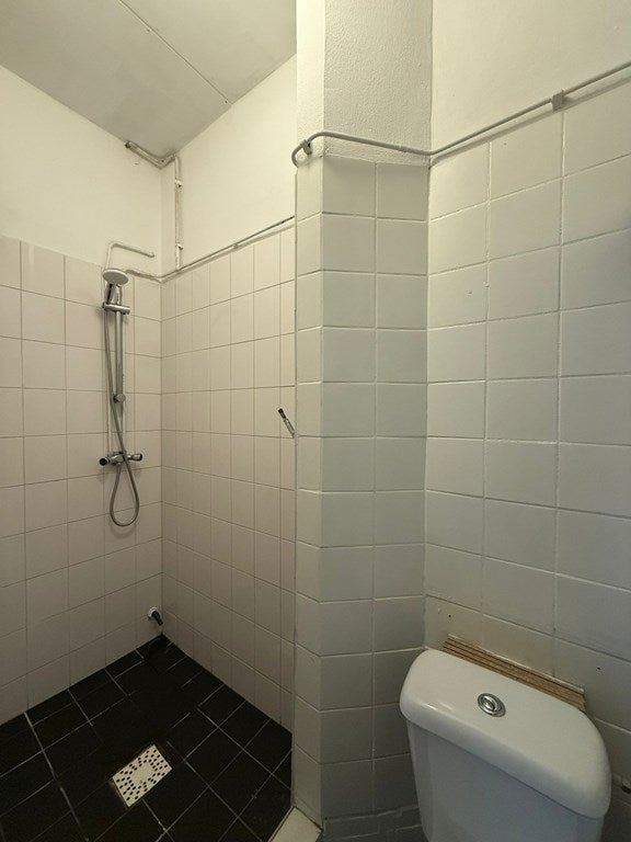 • De badkamer beschikt over een douche, wastafel en toilet.