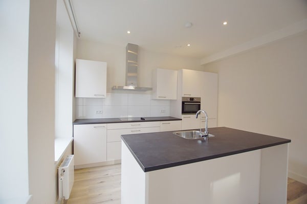 Dit stijlvolle appartement straalt comfort en moderne luxe uit. De woonkamer is voorzien van een hoogwaardige licht eiken PVC-vloer, strak afgewerkte witte wanden en veel natuurlijk licht, wat zorgt voor een frisse en ruime sfeer. De open keuken is volledig uitgerust met moderne apparatuur, waaronder een kookplaat, afzuigkap, grote koelkast/vriezer, vaatwasser en combimagnetron, perfect voor wie houdt van koken en gemak.