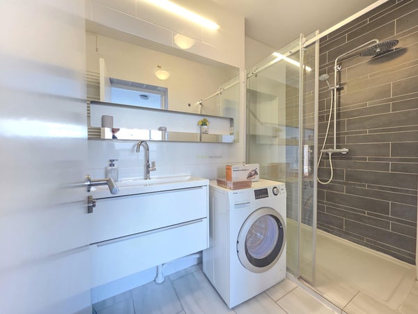 Dit keurige gemeubileerde appartement beschikt over een lichte woonkamer met open luxe keuken met inbouwapparatuur, twee ruime slaapkamers en een balkon op het westen waar je van de middag- en avondzon kunt genieten. De badkamer is uitgerust met een inloopdouche en er is een separaat toilet. De vloeren zijn afgewerkt met laminaat en er is dubbele beglazing aanwezig.