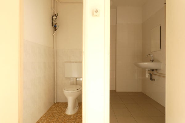 Douche circa 3,50 m2 met handdoekenradiator, wastafel en mechanische ventilatie