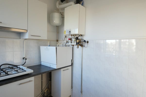 Keuken circa 6 m2 met combiketel uit 2020 en wasmachineaansluiting