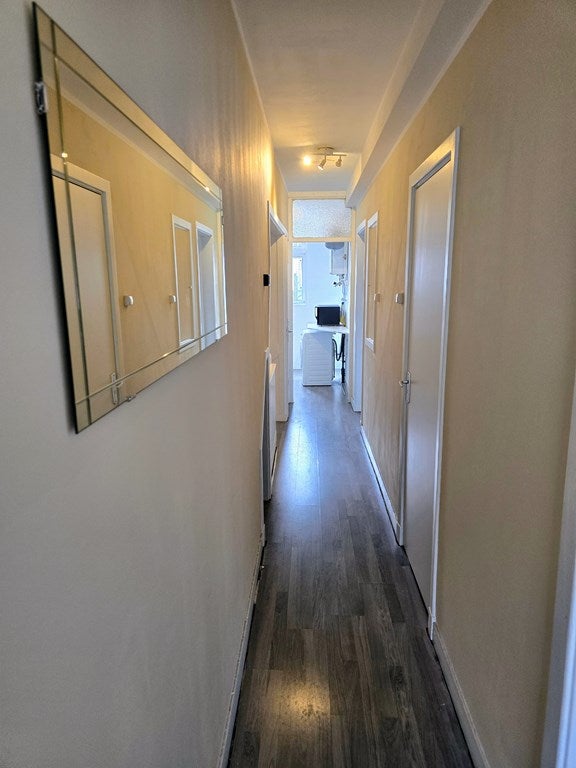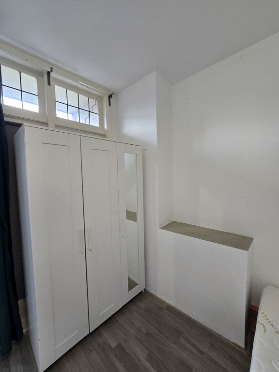 De slaapkamer is rustig gelegen en biedt ruimte voor een bed en kledingkast, waardoor dit een fijne plek is om tot rust te komen.