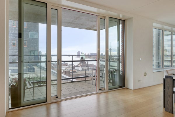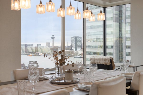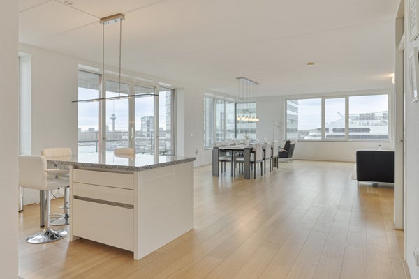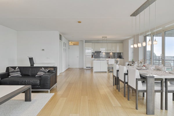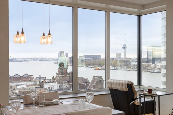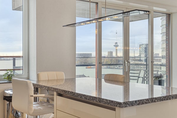 Welkom in dit indrukwekkende 160 m² penthouse op de 10e verdieping, waar ruimte, comfort en panoramisch uitzicht samenkomen. Gebouwd in 2005, biedt deze moderne woning een heldere en luxueuze sfeer, perfect voor iedereen die op zoek is naar een stijlvolle thuis in een van de levendige gebieden van Rotterdam.