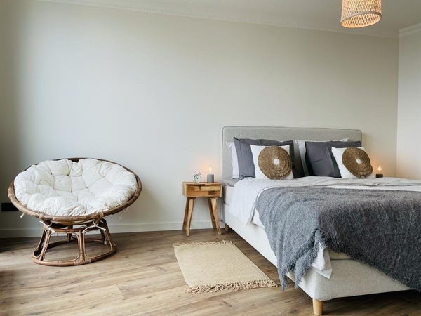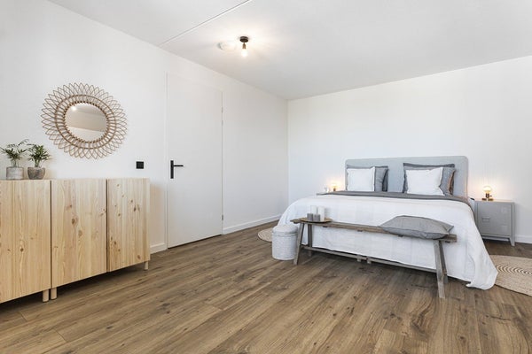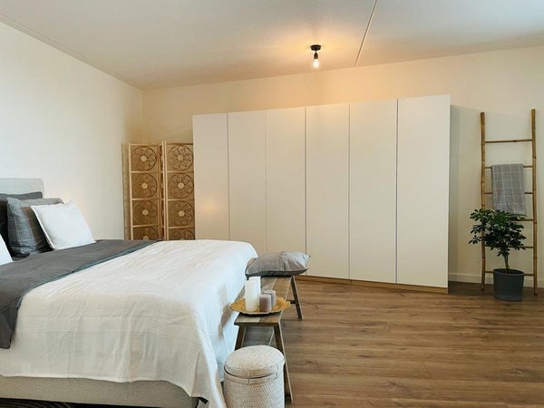 De 1e slaapkamer is voorzien van een ruim tweepersoonsbed met ruime kledingkast.