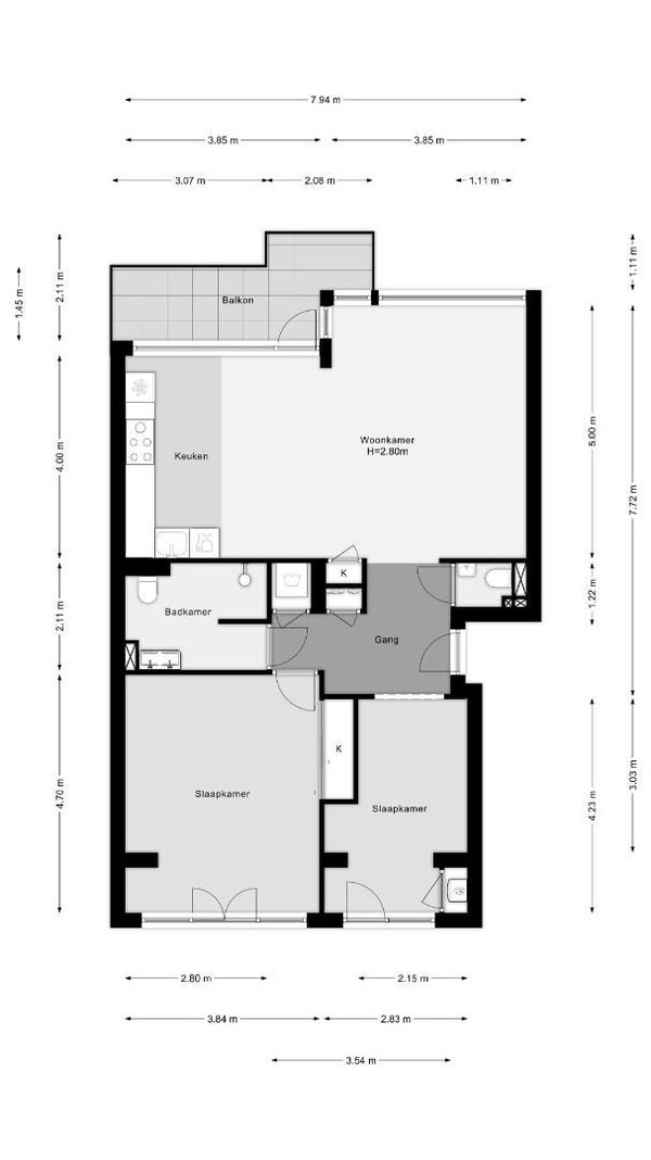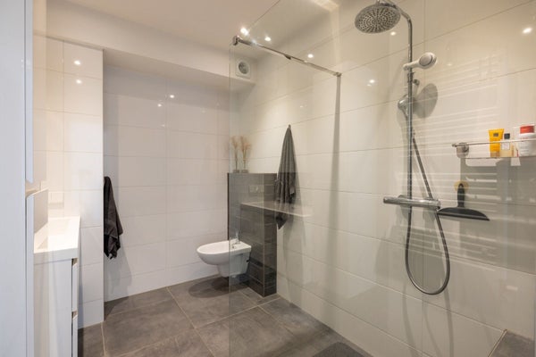 De luxe open keuken is voorzien van de benodigde apparatuur zoals magnetron combi-oven, gasfornuis, een vaatwasser, quooker keukenkraan en een koel-vriescombinatie. De woning heeft 2 ruime slaapkamers gelegen aan de achterzijde van het appartement. De badkamer heeft een inloopdouche, een dubbele wastafelcombinatie en een bidet. In de kelder van het appartementen complex bevindt zich een opslagruimte. Op ca.200 meter afstand van de entree/begane grond is het gratis parkeren.