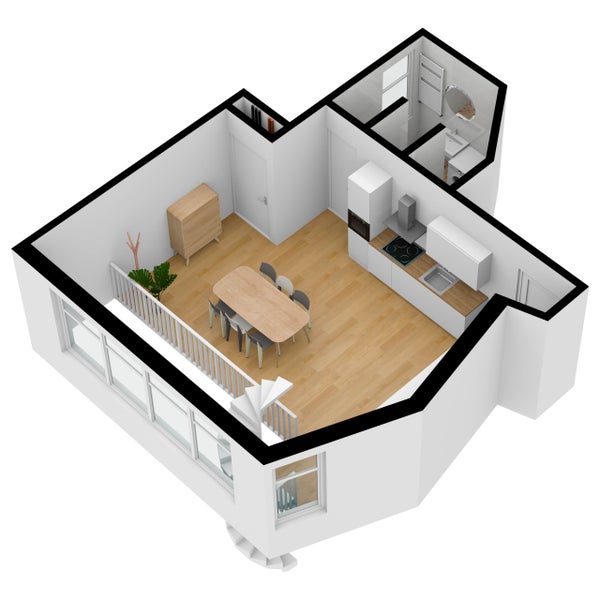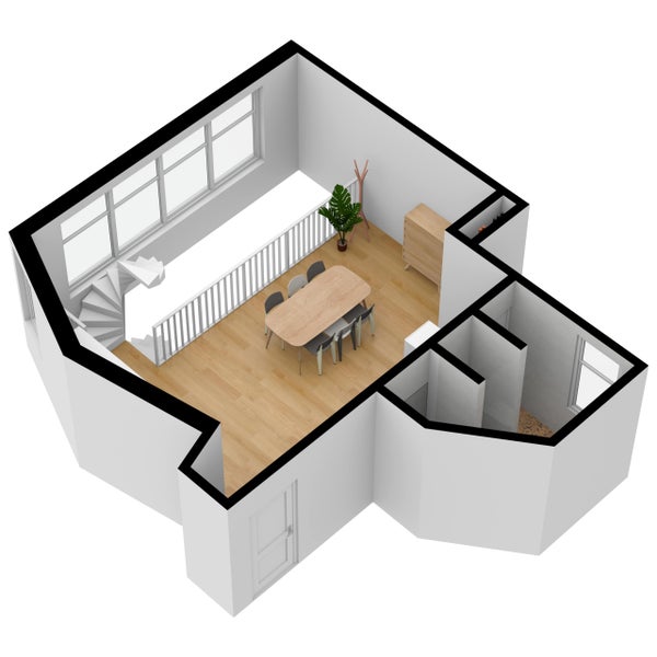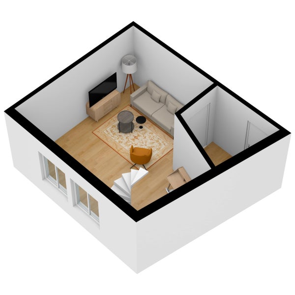 grond en een entresol. Entree op de begane grond, hier bevind zich de badkamer, keuken / eetkamer. Trap biedt toegang tot het souterrain en entresol. In de souterrain bevinden zich 2 slaapkamers (de 2e slaapkamer wordt momenteel gerealiseerd). Via de trap toegang tot de entresol, waar de