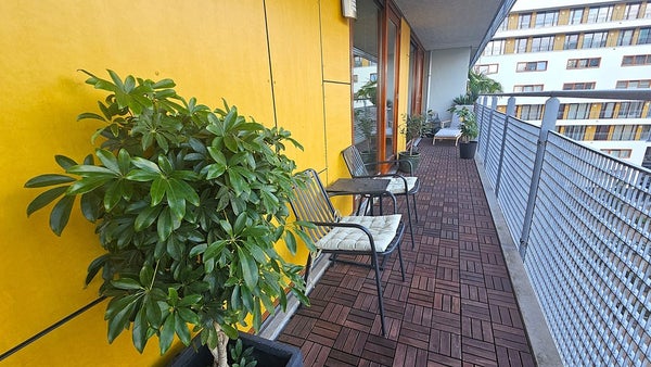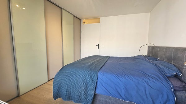 Het appartement beschikt over één ruime slaapkamer met een stijlvolle kastenwand en een aparte werk-/studeerkamer, ideaal voor thuiswerkers of logees. Beide kamers hebben toegang tot het balkon, zodat je ook daar kunt genieten van het uitzicht en de frisse buitenlucht.