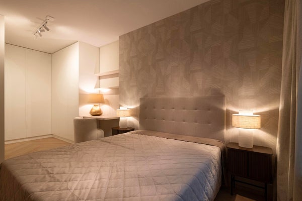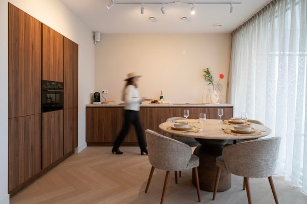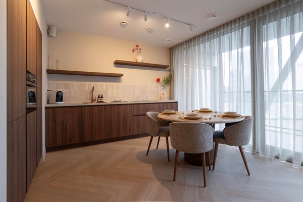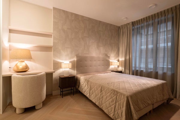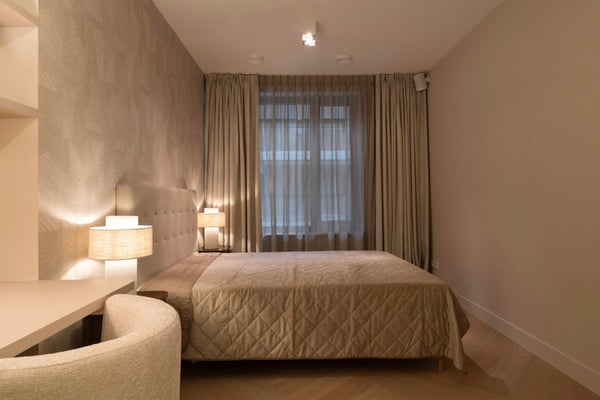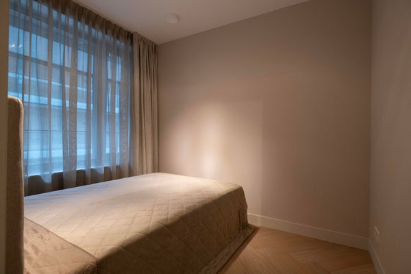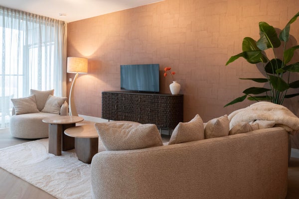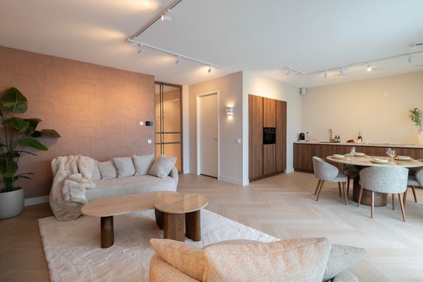 Het appartement is volledig en stijlvol ingericht door een interieurstylist. Je hoeft alleen je koffer mee te nemen. Denk aan luxe meubilair, compleet uitgeruste keuken, vloerverwarming in alle vertrekken en een geavanceerd domoticasysteem voor verlichting en temperatuur. Ook is er een concierge service in het gebouw.