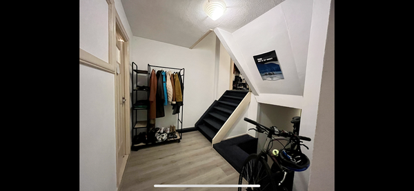 De gemeenschappelijke hal/entree biedt toegang tot het appartement en wordt gedeeld met een winkelruimte.