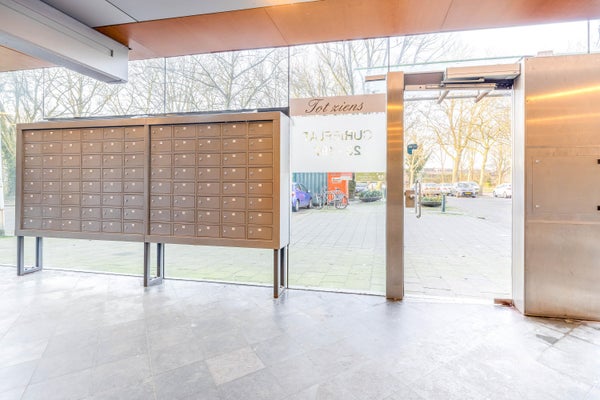 Centrale, afgesloten entree voorzien van brievenbussen en toegang tot de lift, bergingen en het trappenhuis.