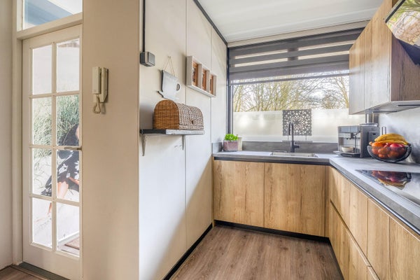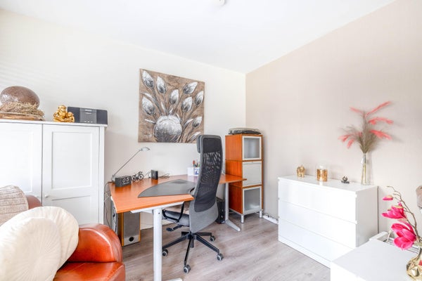 Het appartement heeft een woonoppervlakte van circa 108 m² met een praktische indeling. De lichte woonkamer met halfopen keuken biedt veel ruimte en comfort. De kamer aan de achterzijde is voor diverse doeleinden geschikt. De keuken is voorzien van moderne inbouwapparatuur, waaronder een Quooker, combi-oven, elektrische kookplaat met afzuigkap, vaatwasser en een grote Amerikaanse koelkast.