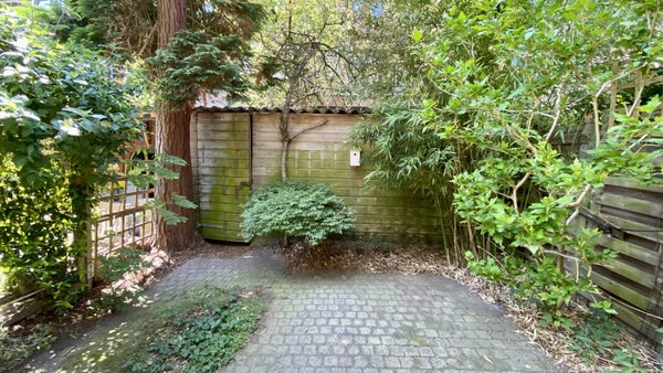 begane grond: entree, hal, keuken, tweede halletje met WC, eetkamer- en woonkamer met openslaande deuren naar de tuin.