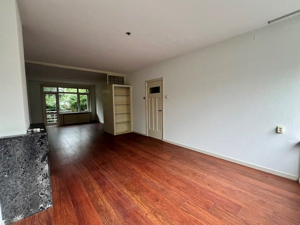 Portiek entree. Ruime woonkamer en eetkamer welke toegang geven tot de tuin aan de achterzijde.