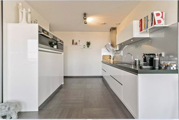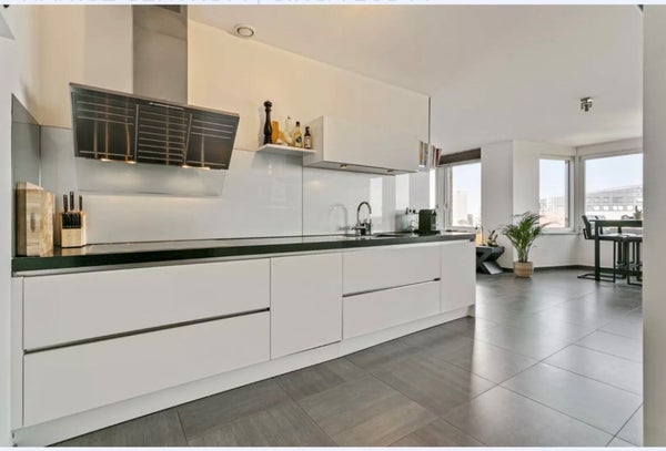 Via de verzorgde centrale entree met bellentableau en liftinstallatie bereikt u de 11e verdieping. 11e verdiepingBij binnenkomst in het appartement komt u in een ruime hal die toegang geeft tot vrijwel alle vertrekken.Via de keuken bereik je de royale woonkamer is bijzonder licht dankzij de grote raampartijen en biedt een indrukwekkend uitzicht over de skyline van Rotterdam. De ruimte is modern ingericht en heeft een strakke, luxe uitstraling met een nette tegelvloer en neutrale wandafwerking. De woonkamer is verdeeld met een comfortabele zithoek, een ruime eethoek en de keuken.De open keuken is modern uitgevoerd in hoogglans wit met een donker werkblad en voorzien van diverse inbouwapparatuur zoals inductiekookplaat, afzuigkap, vaatwasser, oven, magnetron koelkast en vriezer. De keuken sluit naadloos aan op de woonkamer en vormt een strak geheel met de rest van de ruimte.