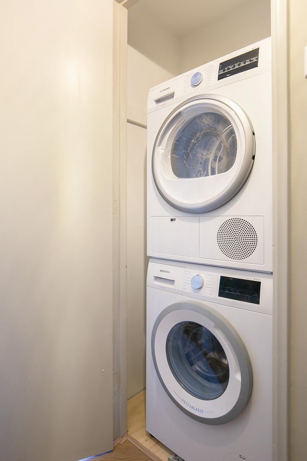 Inclusief wasmachine en droger in de op maat gemaakte gangkast.