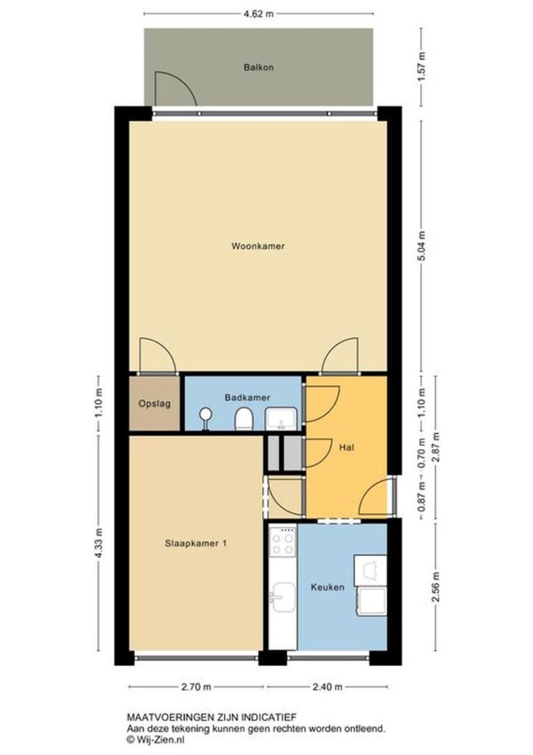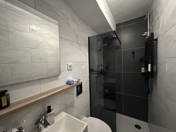 Vanuit de woonkamer is er toegang tot het brede balkon dat is voorzien van een zitset. Aan de voorzijde ligt de keuken die is uitgerust met een koelkast, vriezer, wasmachine, inbouwafzuigkap, gaskookplaat, vaatwasser en praktische opbergruimtes. De slaapkamer bevindt zich eveneens aan de voorzijde en heeft een tweepersoonsbed en grote kledingkasten. De badkamer is modern afgewerkt en voorzien van een inloopdouche, handdoekradiator, wastafel met meubel en een hangend toilet. Daarnaast beschikt de woning over een externe berging.