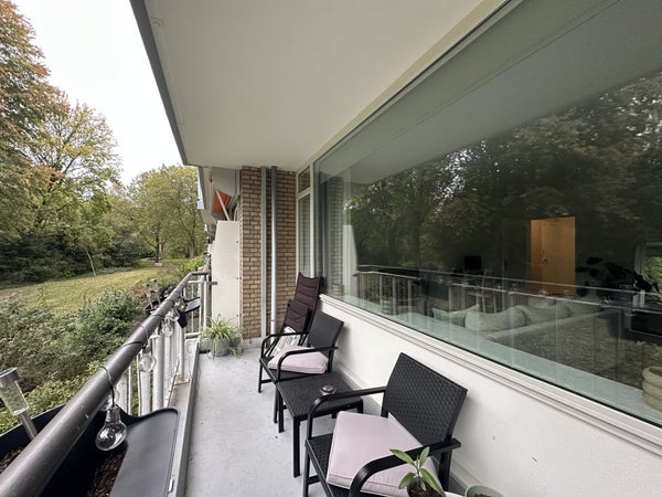 Het appartement biedt dus een rustige woonomgeving met groen uitzicht en comfortabele voorzieningen.
