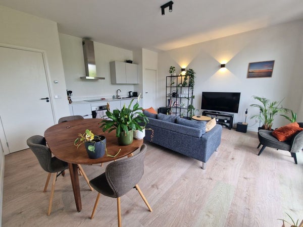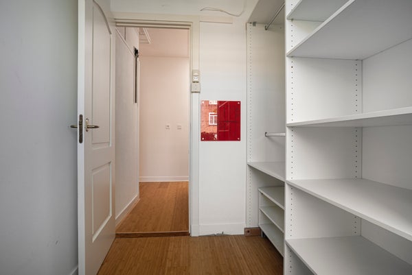 De moderne keuken is volledig ingericht en voorzien van een gaskookplaat, afzuigkap, spoeleiland met spoelbak, vaatwasmachine, koelkast met separate grote vriezer, oven, aparte magnetron en veel bergruimte. De keuken beschikt over een groot betonnen aanrechtblad en een gezellige bar met barkrukken die onderdeel blijven van de woning. Vanuit de keuken heeft u toegang tot het fijne balkon van ongeveer 4 m2 op het noorden waardoor u nog tot laat in de middag kunt genieten van de zon.