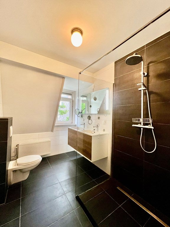 • Voorzieningen badkamer: wastafel met wasmeubel en spiegel en een inloopdouche