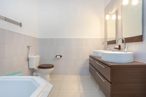De tweede etage is de slaapetage. Hier zijn twee ruime slaapkamers, waarvan één met een vaste kast en een wand met inbouwkasten. Vanuit deze slaapkamer heb je ook toegang tot het tweede balkon. Hier kun je ’s middags uiterst genieten van de zon! De nette badkamer is o.a. voorzien van zowel een heerlijk groot ligbad als douchecabine met regenfunctie.