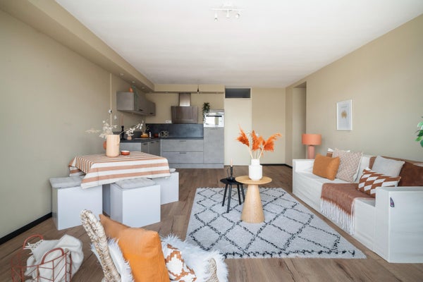 Indeling: Woonkamer met open keuken, 2 slaapkamers, washok, badkamer en een aparte wc.