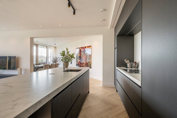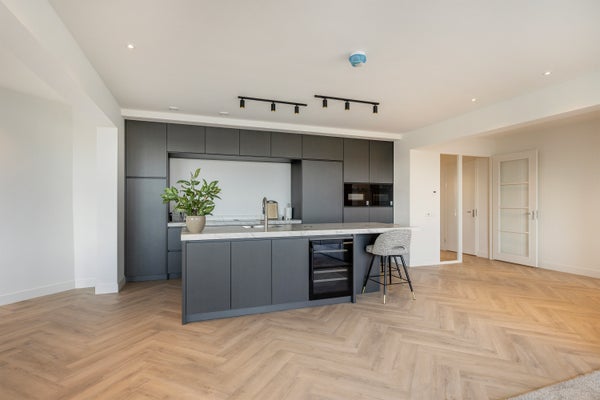 Met vloerverwarming en -koeling, slimme techniek, grote raampartijen en een heerlijk privé terras van 21 m² geniet je hier het hele jaar van comfort. De luxe keuken is volledig uitgerust met o.a. een kookplaat met geïntegreerde afzuiging, combi-oven, magnetron, koelkast, vriezer, vaatwasser en wijnkoeler, klaar voor elke dineravond.