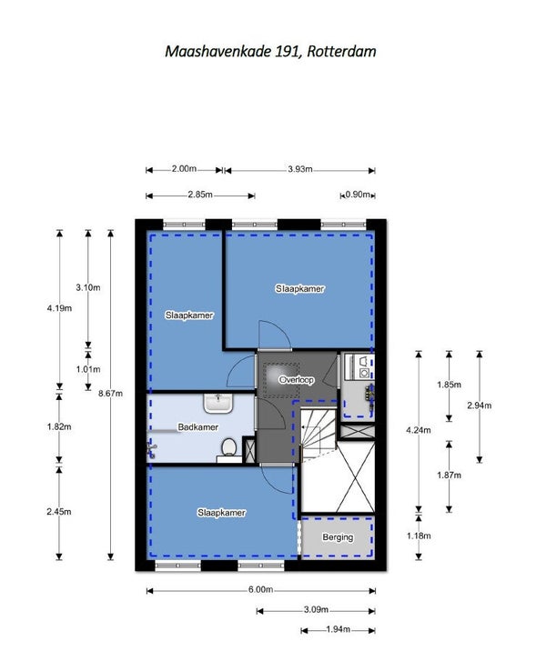 Eigen entree vanaf de straat, middels trapopgang komt u uit in de hal op de 2de verdieping.