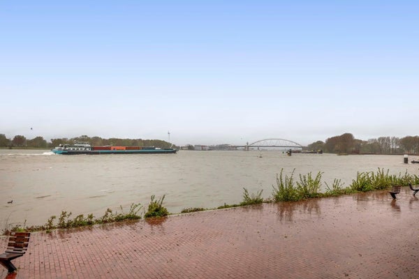 De living is royaal, licht en uitnodigend. Dankzij de grote ramen en de schuifpui loopt binnen vrijwel naadloos over in buiten. Een plek voor je eerste kop koffie in de zon, lange avonden met vrienden of een moment van stilte met front-row zicht op de Maas.