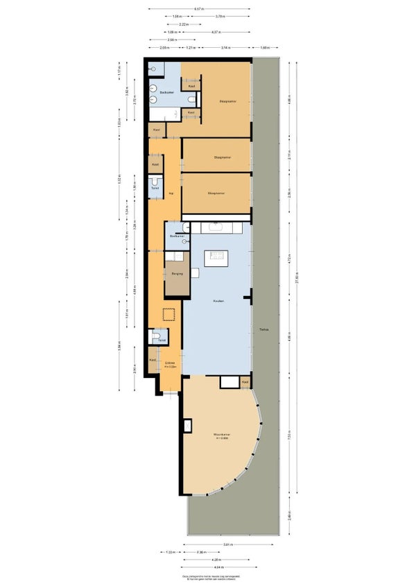 De keuken is zowel praktisch als stijlvol en voorzien van alle benodigde inbouwapparatuur. Direct aangrenzend vind je een bijkeuken voor extra opslag en wasruimte.