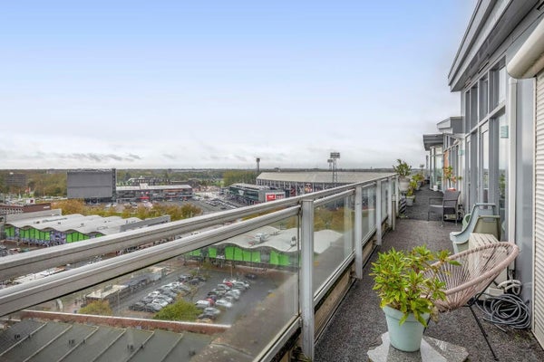 Wonen op hoog niveau, letterlijk én figuurlijk. Dit royale penthouse van ca. 163 m² in de geliefde wijk De Veranda combineert ruimte, licht en comfort met een panoramisch uitzicht dat élke dag opnieuw indruk maakt. Plafondhoge raampartijen, een sfeervolle open haard, parkeerplaats, drie slaapkamers en twee badkamers zorgen voor een uitzonderlijk wooncomfort. Het absolute hoogtepunt? Het zuidgerichte dakterras van ca. 63 m², over de volle lengte van circa 30 meter. Hier leef je mee met het licht en het uitzicht – van zonsopkomst tot zwoele zomeravond.