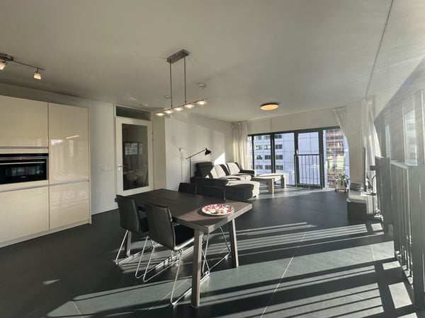 Er is een apart toilet en een praktische bergkast in het appartement. Daarnaast beschikt het appartement over een wasmachine en droger.Bijzonderheden:Volledig gemeubileerd met stijlvolle meubels en accessoires.Gelegen op loopafstand van diverse winkels, restaurants en openbaar vervoer.Perfecte locatie met gemakkelijke toegang tot de uitvalswegen.Veel natuurlijk licht door de grote ramen en een prachtig uitzicht over de stad