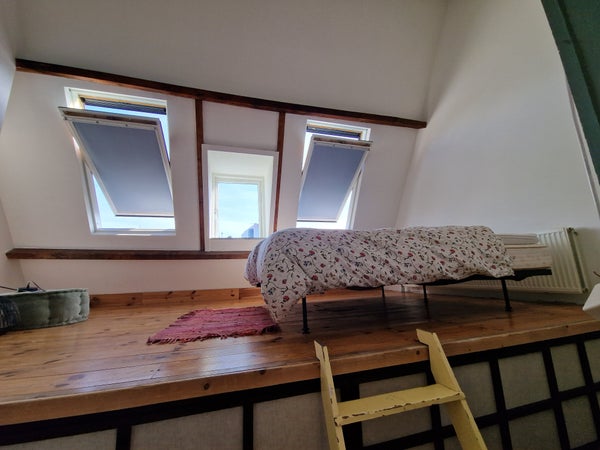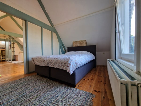 De gezellige slaapkamer met een ruime 2-persoonsbed bevindt zich aan de achterzijde en biedt toegang tot een klein balkon waar het heerlijk toeven is. De 2e slaapkamer bevindt zich aan de voorzijde. Het 2-persoonsbed bevindt zich op een verhoging. Eronder bevindt zich bergingsruimte dat bestemd is voor kleding en zaken die niet voor dagelijks gebruik nodig zijn. De fraaie tuimelramen maken het mogelijk om goed te kunnen ventileren.
