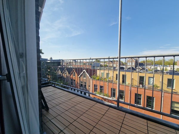 Via de houtentrap loopt u in 1 keer door naar de 2e verdieping. Hier aangekomen, hebt u de garderobe met aan de rechterkant, een toilet en een trap naar de 2e woonlaag. De L-vormige woonkamer bevindt zich aan de voorzijde en bereikt u via een tussenruimte dat voldoende gelegenheid biedt om te gebruiken als eetkamer of kantoorruimte. De prachtige grote ramen aan de voorzijde laten mooi daglicht binnen en zijn goed geluid- en warmte geïsoleerd! Aan de achterzijde bevindt zich een open keuken die is voorzien van alle gemakken waaronder een 5-pits kookgelegenheid met oven, een vaatwasser en koelkast. Vanuit het raam hebt u een vrij uitzicht op de omgeving en het balkon. Naast de keuken hebt u bovendien om een eettafel te plaatsen. Vanuit deze ruimte bereikt u het balkon waar u het ochtend en middaglicht ontvangt. Vanaf het balkon kijkt u uit de fraaie omliggende panden die in de verte te zien zijn.