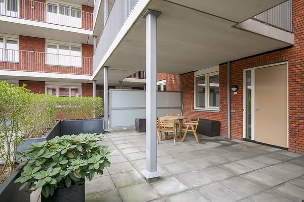 Groot betegeld terras, deels overdekt