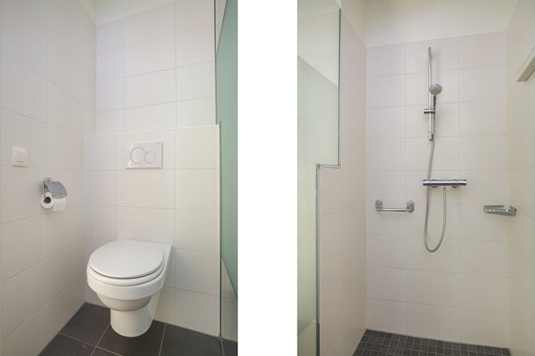 - Badkamer voorzieningen: douche, wastafelmeubel met spiegel, aansluiting voor wasmachine