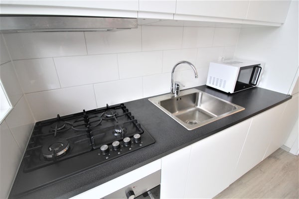 De keuken is voorzien van vaatwasmachine, afzuigkap, 4-pitsgastoestel, koelkast, vriezer, oven en magnetron. Vanuit de keuken heeft u toegang tot het balkon.