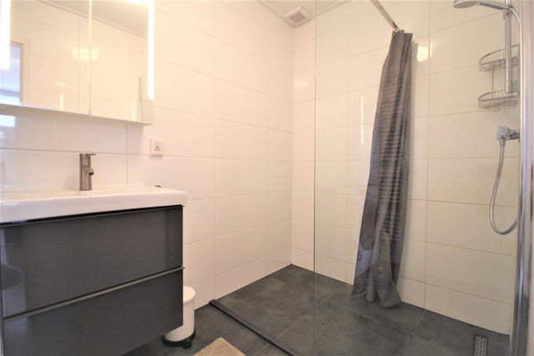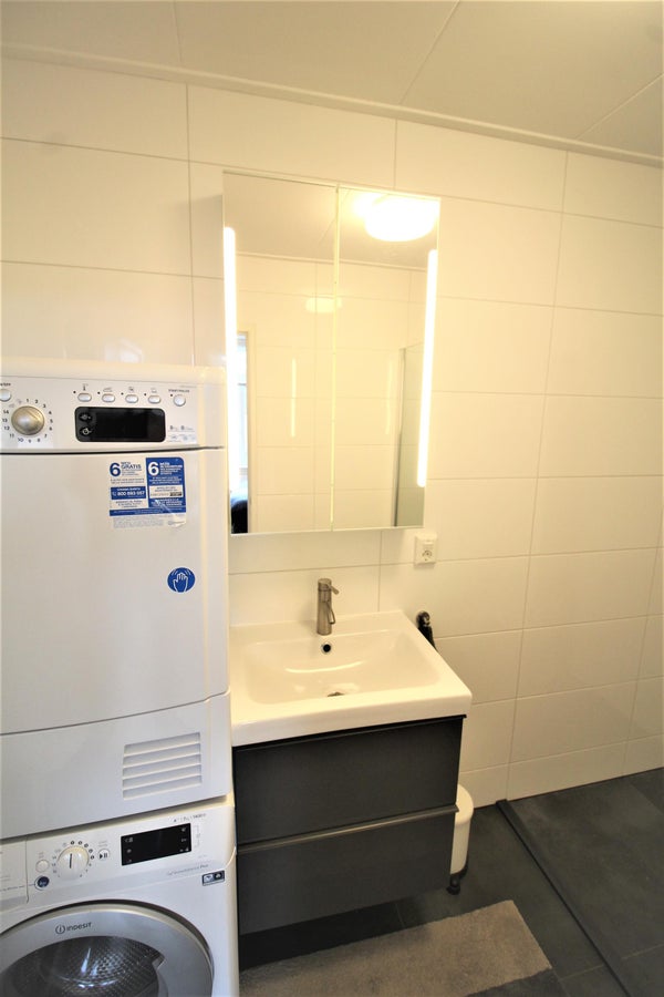 Vanuit de riante slaapkamer heeft u toegang tot de luxe badkamer. De badkamer is voorzien van een ruime inloopdouche, luxe wastafel meubel, wasmachine en droger.
