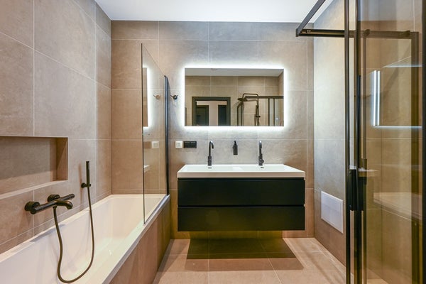 Badkamer: Luxe badkamer met moderne voorzieningen.
