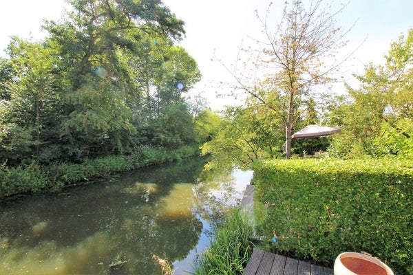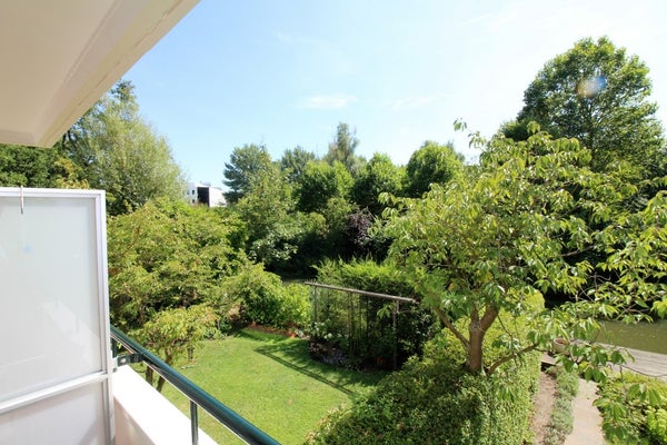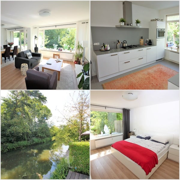 Indeling:Entrée op de eerste verdieping. De hal biedt toegang aan alle vertrekken op de eerste verdieping. Ruime en lichte woonkamer gelegen aan de achterzijde van de woning. De woonkamer biedt toegang tot het balkon dat een prachtig uitzicht biedt op de achtertuin aan het water. Zeer luxe en nieuwe keuken in witte kleurstelling voorzien van diverse inbouw apparatuur zoals een gaskookplaat, combioven, afzuigkap en koelkast met vriezer. Slaapkamer I is ruim opgezet en gebruikt worden als studie/werkkamer. Slaapkamer II is voorzien van een ruim tweepersoonsbed en opbergruimte en biedt toegang tot het balkon aan de voorzijde van de woning. Volledig betegelde badkamer in witte kleurstelling voorzien van een douche en toilet. De vaste trap biedt toegang tot de begane grond. Ruime slaapkamer voorzien een ruim tweepersoonsbed en een ruime linnenkasten. De slaapkamer biedt toegang tot de volledig betegelde badkamer in witte kleurstelling voorzien van een douche, toilet, droger, wasmachine, design radiator en dubbele was meubel met spiegel. De badkamer biedt toegang tot de tuin aan de achterzijde van de woning. De zonnig gelegen royale tuin (ca. 19m diep) op het zuiden grenst aan het water.Het stapelbed is niet aanwezig in de woning.Bijzonderheden