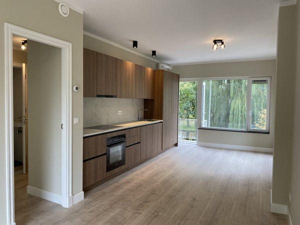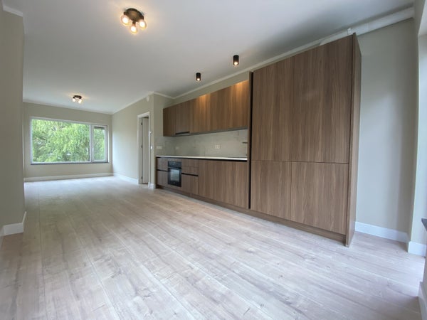 Vervolgens komt u aan in de sfeervolle en ruime woon/eetkamer met open keuken. De keuken is voorzien van een keramische kookplaat, oven, vaatwasser, koelkast, vriezer, afzuigkap en bevindt zich aan de voorzijde van het appartement. Aan de voorzijde ligt tevens het balkon.