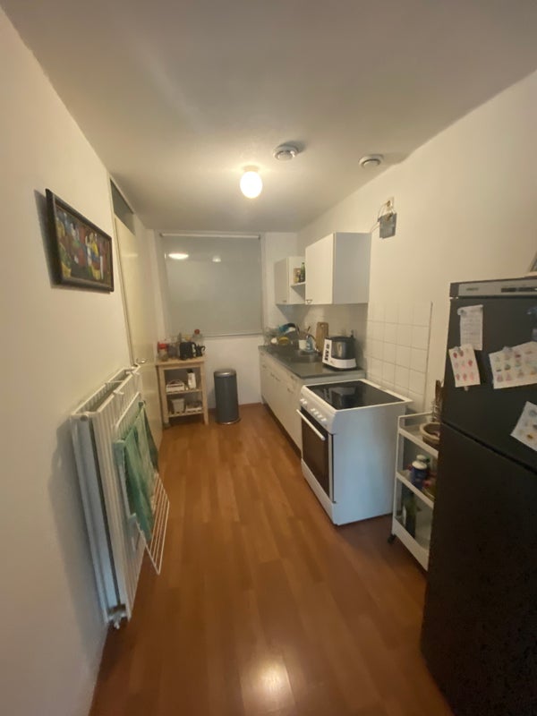 Vloer, raambekleding, koelkast, kooktoestel en wasmachine zijn ter overname van de huidige huurder.